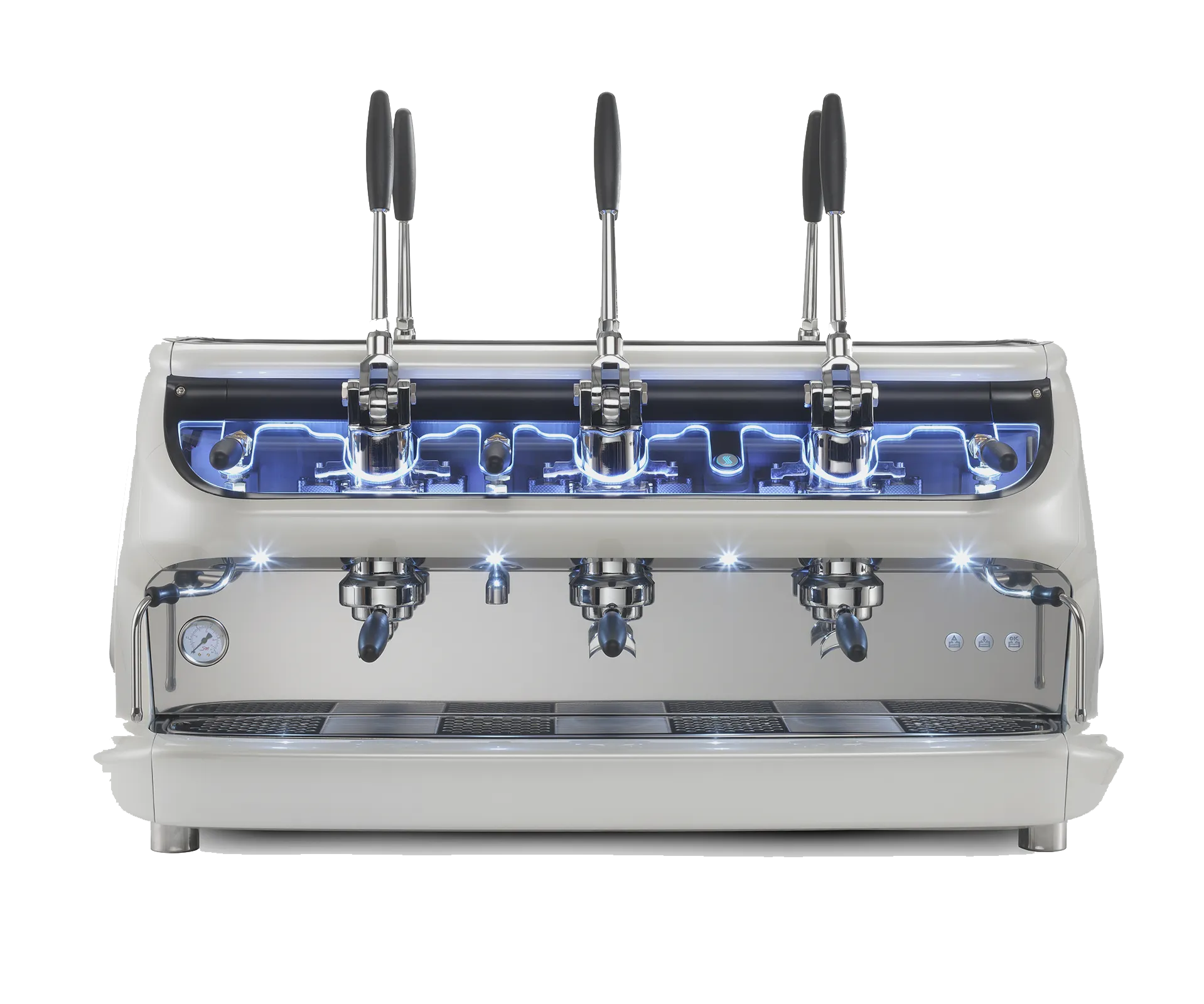Saturno è un’opera d’arte con pannelli rotondi, inserti luminosi e gruppi di erogazione Cime, che garantiscono stabilità termica e controllo preciso della temperatura. Il dosaggio elettronico programmato eleva la precisione dell’estrazione del caffè.